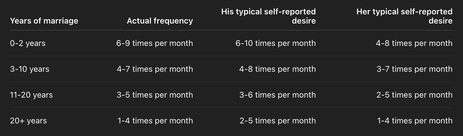 There is no universal marital quota. There is no cosmic referee blowing a whistle because somebody’s household is below league average. Researchers consistently find that married people tend to be more sexually active than unmarried people, but frequency varies a lot by age, health, stress, children, work schedules, medication, resentment, sleep, and whether one of you has spent the last six weeks speaking exclusively in sarcastic sighs.